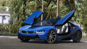 BMW i8 2015 для GTA 5 является отличным и выделяющимся спорткаром от марки БМВ. Машина с детализированными текстурами и красивым салоном. Не заменяет никакого автомобился, так что имеет свои характеристики и отличную управляемость на дороге.