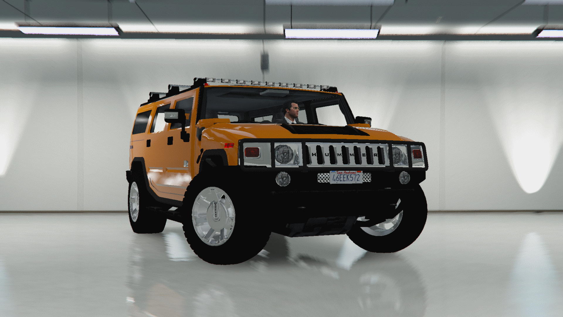 Hummer H2 для GTA 5 с автоустановкой с помощью программы Опен4. Автомобиль поддерживает все функции игры. Хаммер с качественными и детализированными внешними текстурами, рабочая приборная панель, фары и габариты. Автомобиль может деформироваться и царапаться.