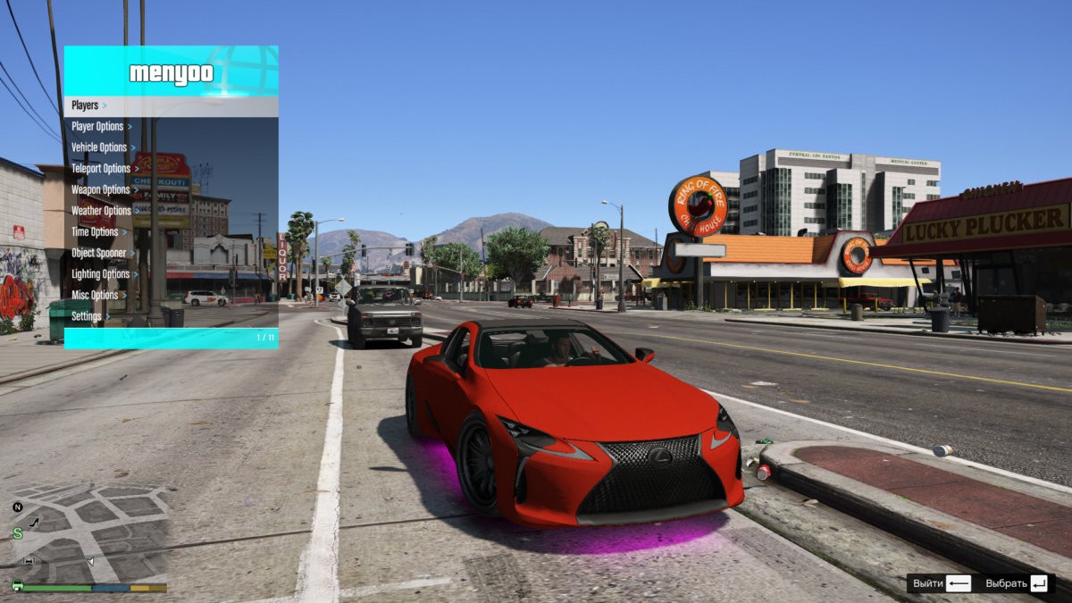 Menyoo Trainer – модификация, которая позволяет делать тюнинг машины в любом месте на карте. Очень удобный для любителей апгрейда, так как вам больше не придется ехать в сервис и тратить лишнее время на переезды.