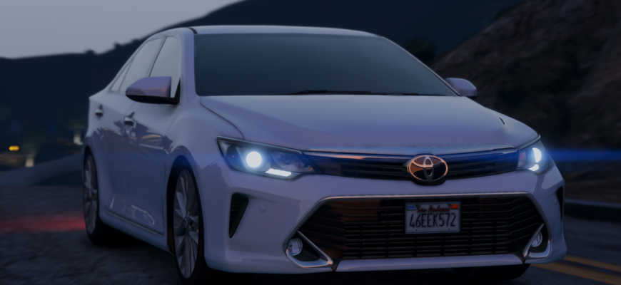 Toyota Camry 2016 для GTA 5 с автоустановкой с помощью программы OpenIV. Автомобиль поддерживает все функции игры. Камри выполненна с детализированным интерьером и экстерьером, рабочая приборная панель, фары, габариты. Авто может повреждатся, пачкаться и царапатся.