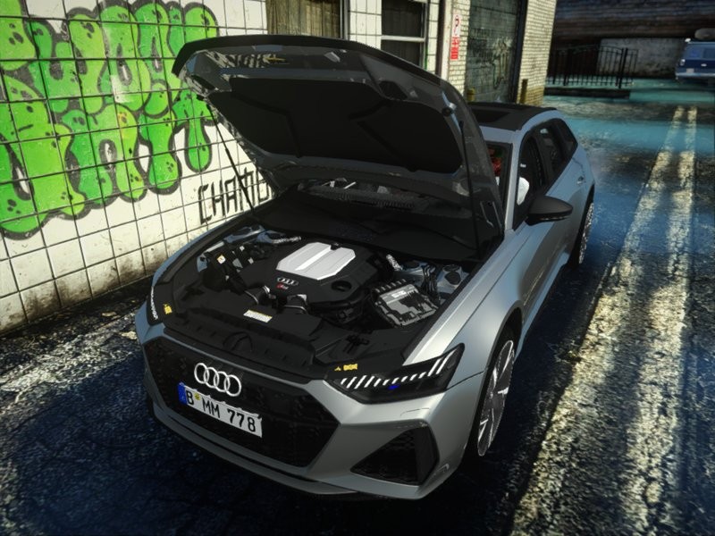 Немецкая спортивная версия универсала Audi RS6 C8. Модель неплохо сделана, текстуры кузова и салона качественные. Управление настроено хорошо, добавлено скорости. Также есть своя коллизия.