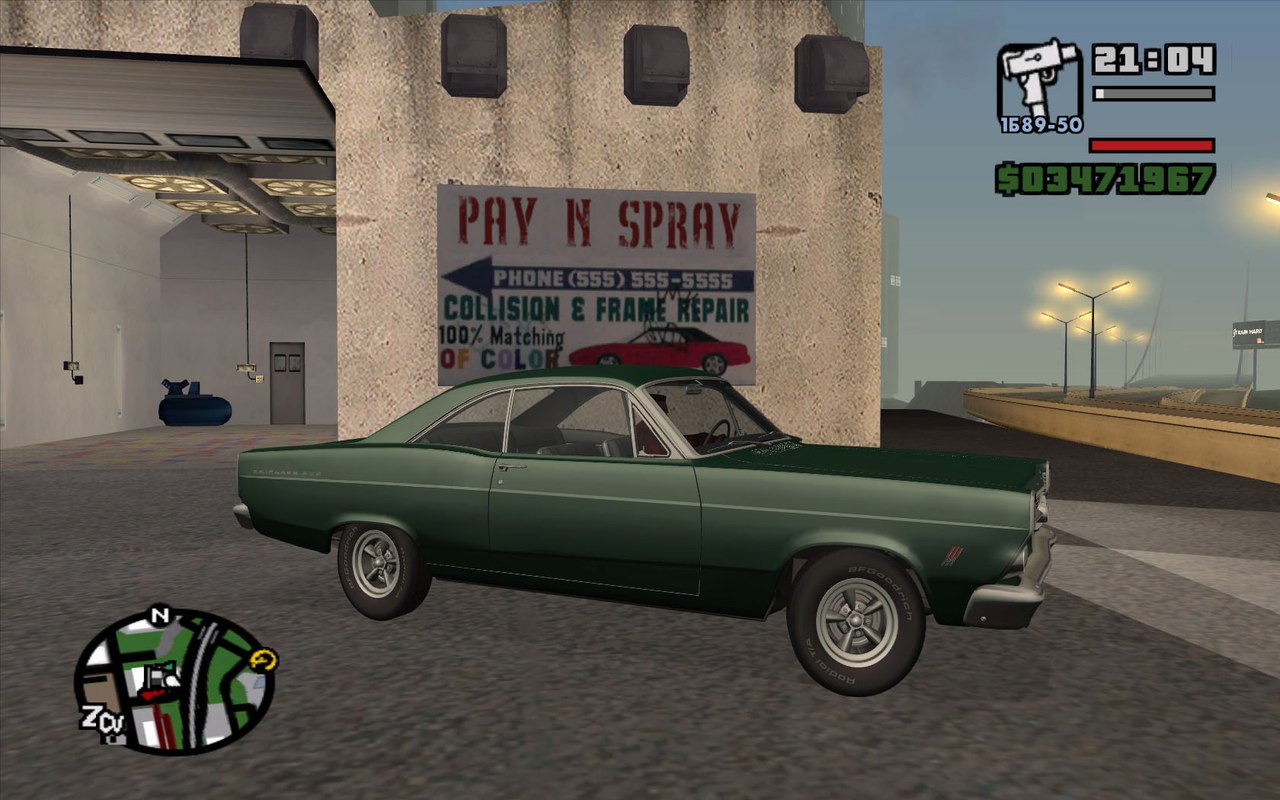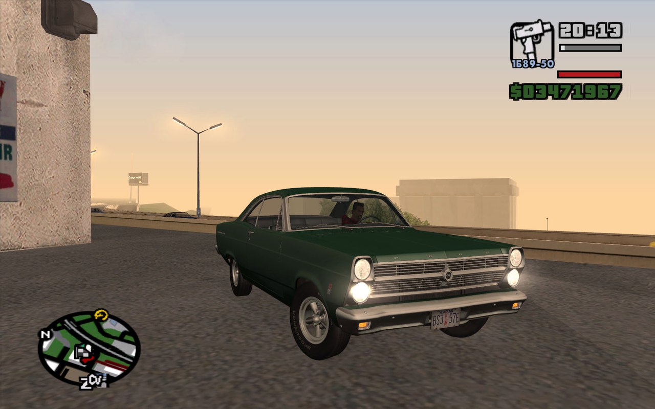 Американская легендарная классическая мощь – Ford Fairlane 500 1966. Машина исполнена практически идеально: качественные текстуры салона и кузова с повреждениями, правильное отображение. Управление настроено под заднеприводные маслкары, что отлично подойдет для любителей дрифта.