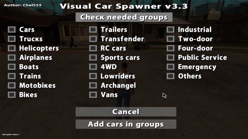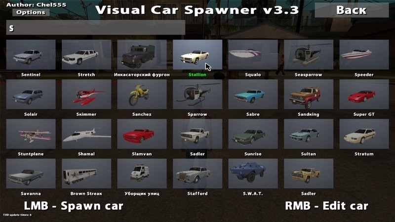 Визуал Кар Спавнер v3.3 для ГТА Сан Андреас